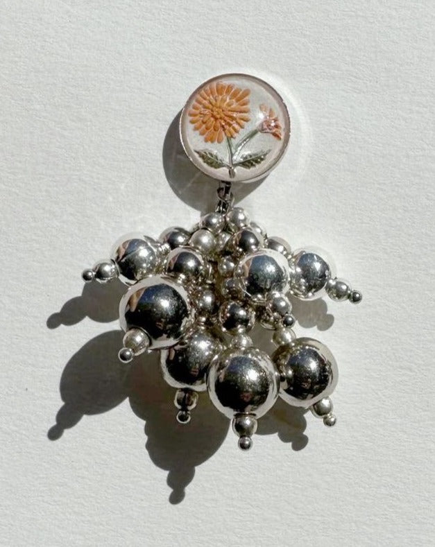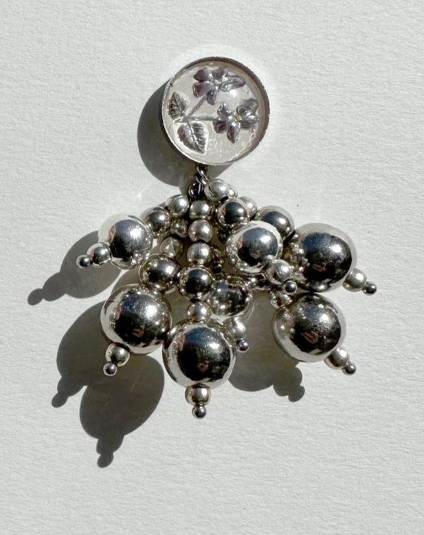 Like a field of wildflowers, the Bouquet 2, consists of six different Vintage flower cabochons with a mix of rhodium beads on stainless steel clip-ons. Choose the flowers that move you. Handmade by Karo at her home studio in Los Angeles.