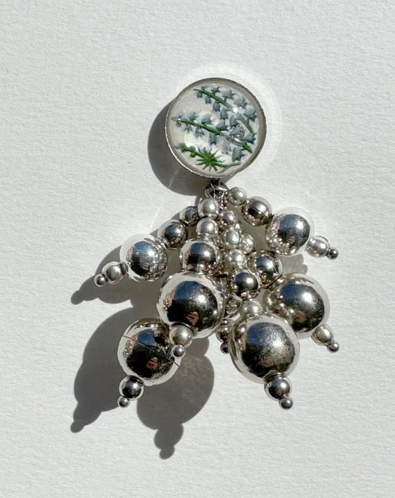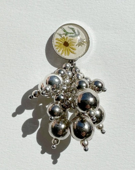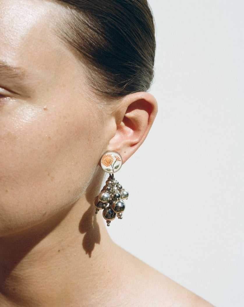Like a field of wildflowers, the Bouquet 5, consists of six different Vintage flower cabochons with a mix of rhodium beads on stainless steel clip-ons. Choose the flowers that move you. Handmade by Karo at her home studio in Los Angeles.