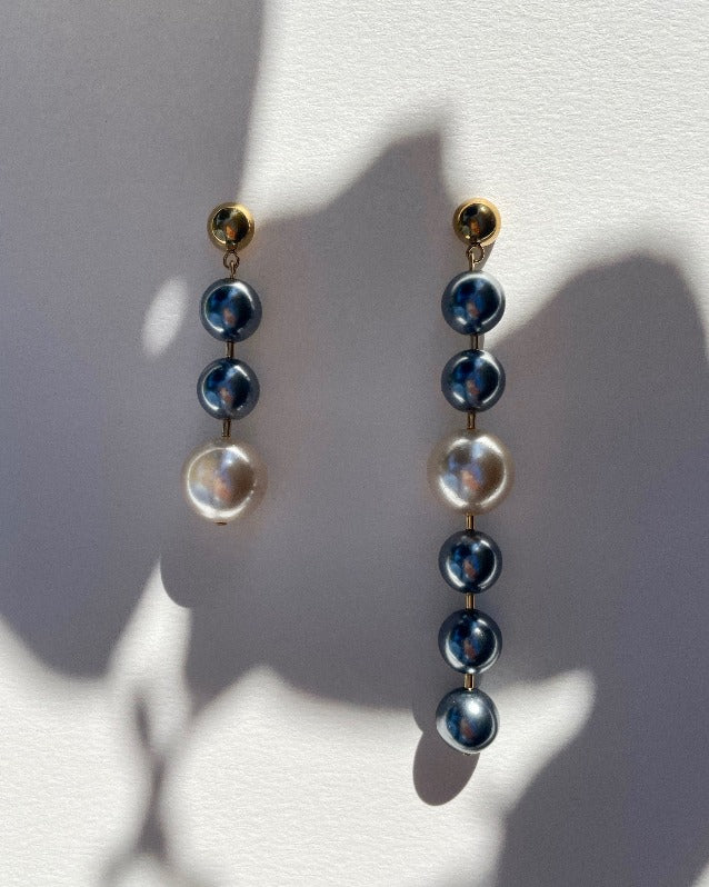 Vintage Miriam Haskell glass pearls (10mm and 15mm) with brass beads earrings with gold-plated stainless steel 8mm half-ball earrings.