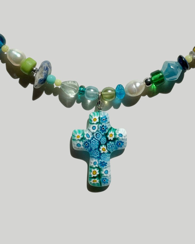 Baby Blue Murano Cross Necklace