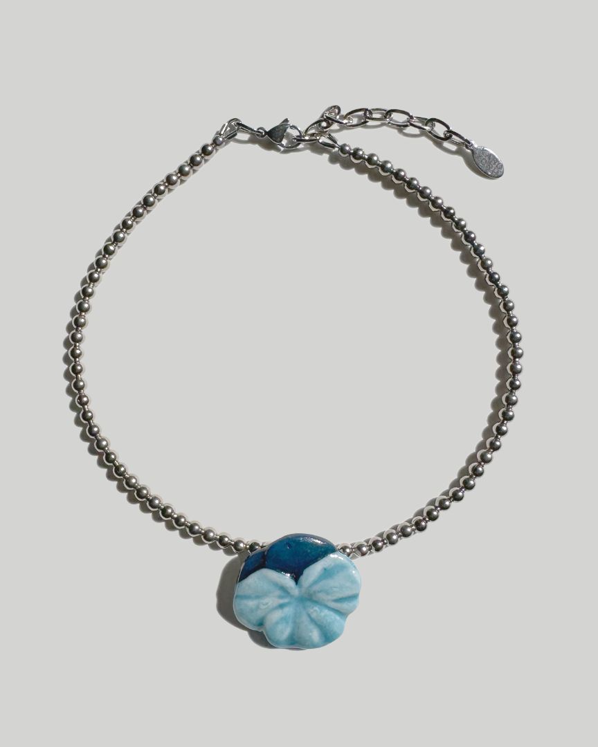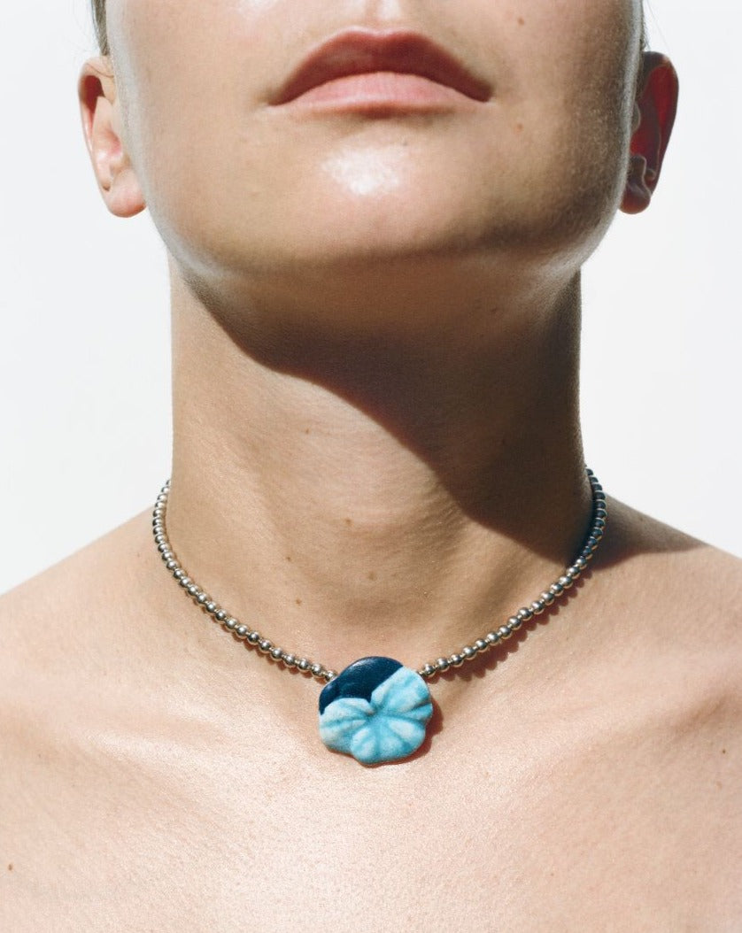 Punk meets pretty as vintage metallic rhodium beads (4mm) are paired with vintage ceramic flower pendant (28 x 31mm) and stainless steel lobster clasp. The choker is 13 inches with 2 inch extension chain.