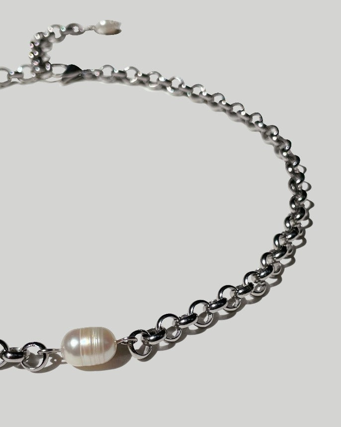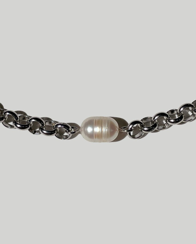 Vintage freshwater pearl (10-15mm) with stainless steel chain and lobster clasp.