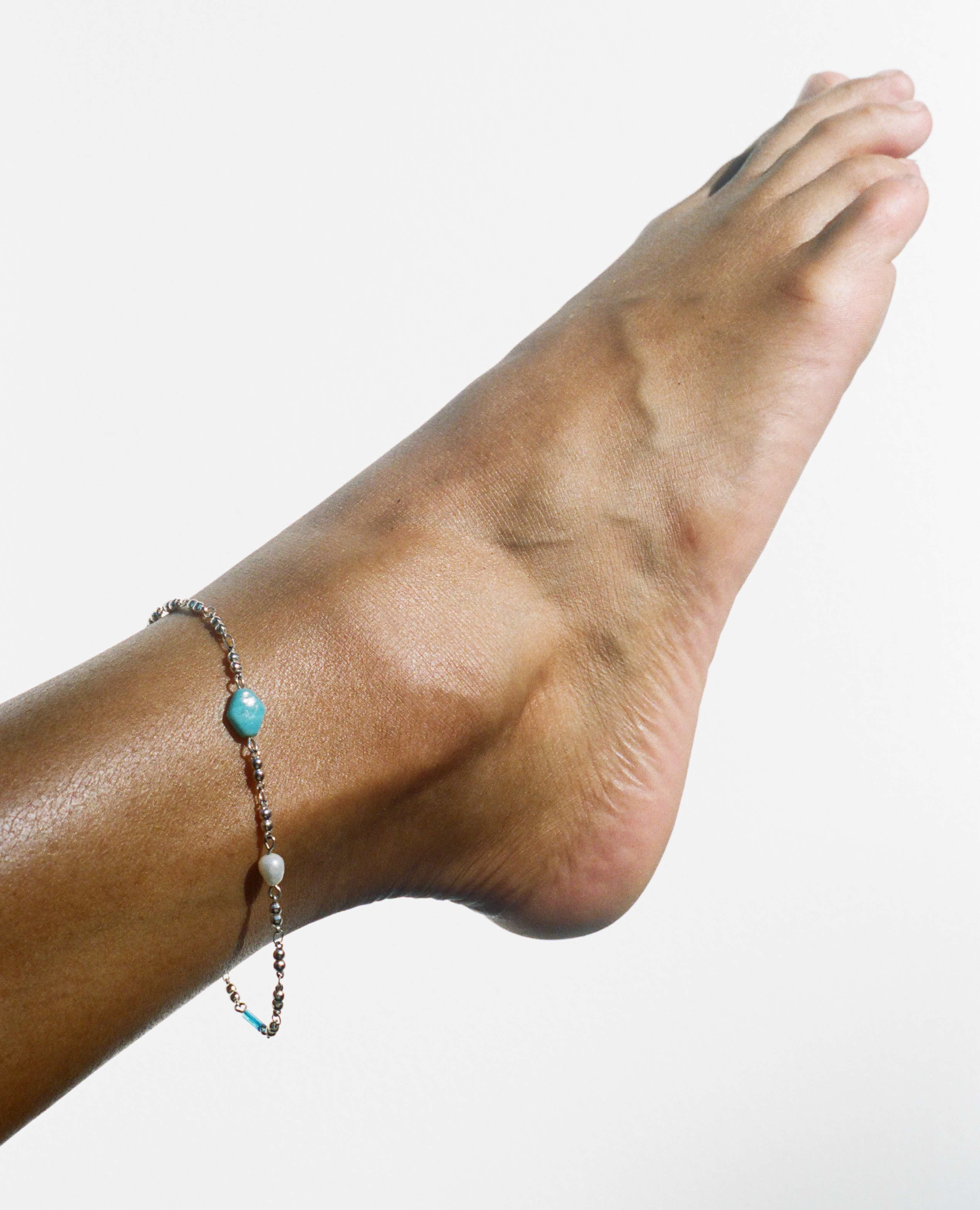 Vintage beads mixed with vintage silver plated chain. 9.5 inches long with silver clasp.